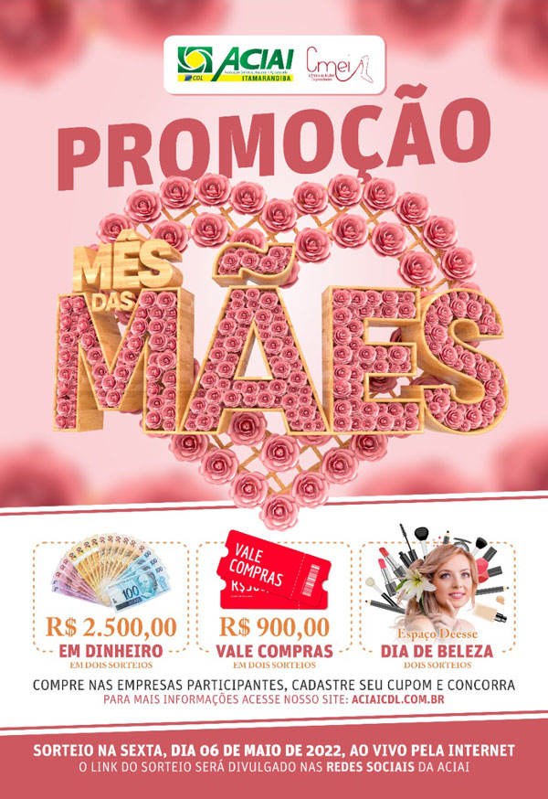 No mês de março também foi lançada a Promoção do dia das Mães, com objetivo de fomentar, impulsionando os clientes a consumirem no comércio local, uma forma de diminuir as vendas online, sendo que com esse incentivo os clientes deram preferência por comprar em nossas lojas e ter uma chance de concorrer. Todas as empresas tiveram a oportunidade de participar com um valor Único e simbólico. Obs: Sorteio foi realizado dia 06/05/2022 Sexta-Feira.